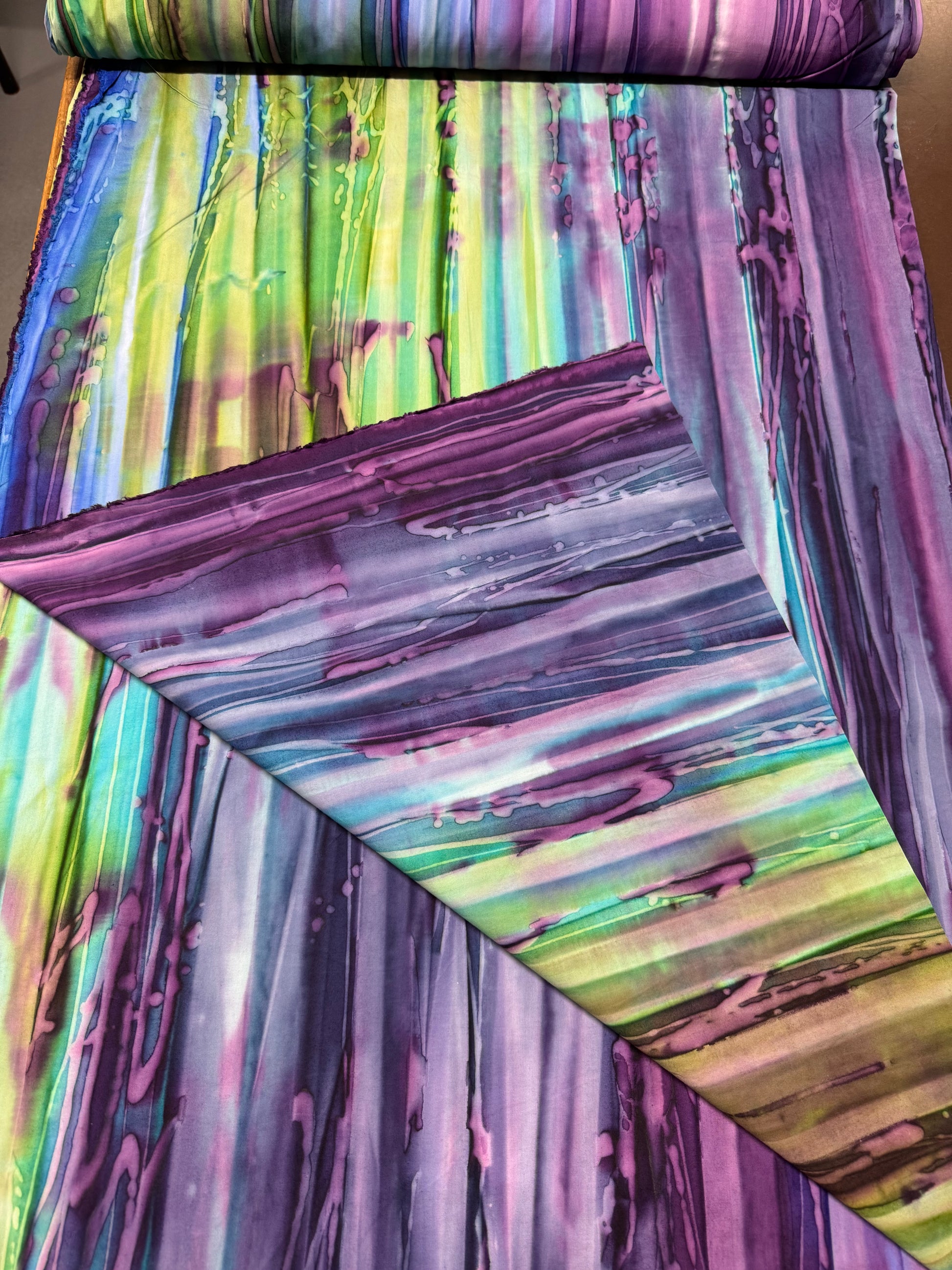 Gorgeous Batik Wideback fabric in stunning Ombre Stripes - Blue, purple and Green. pattern.