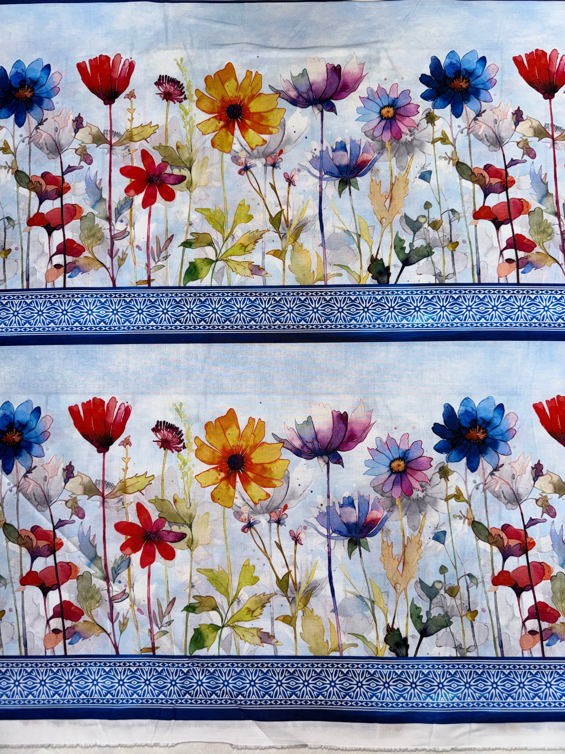 This is the Blue and White Border Print - 4 repeats per width of fabric.