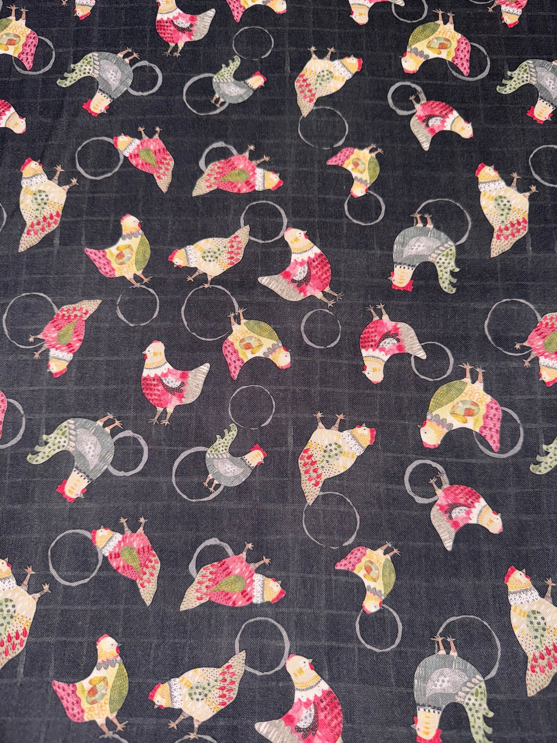 Delightful Red and Grey Chickens scratching around. For fun crafty projects and quilts
