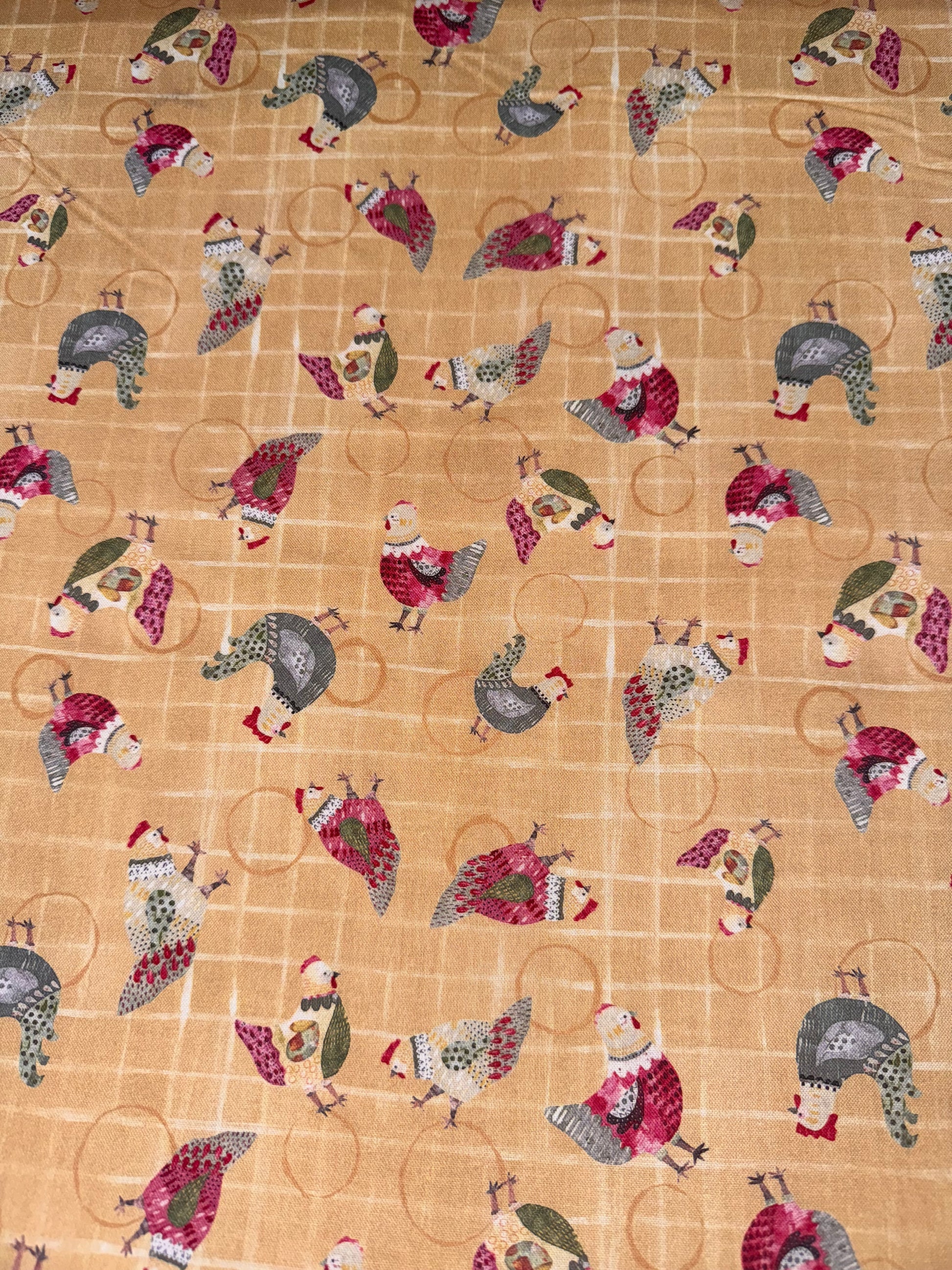 Delightful Red and Grey Chickens scratching around. For fun crafty projects and quilts