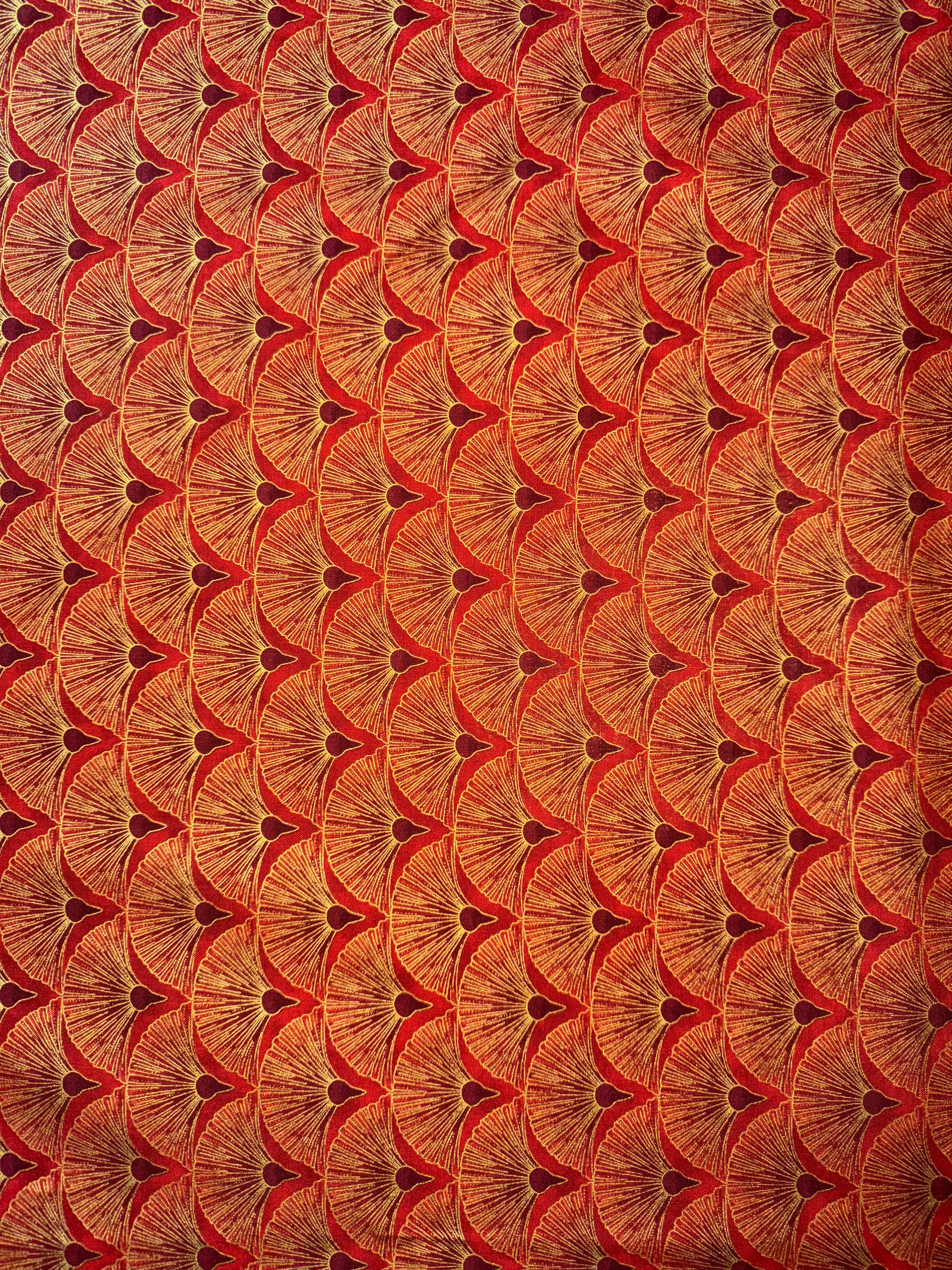 This Classic Fan design by Leesa Chandler features luscious shades of Dark Red and Gold. This is our last piece and there is no more at the wholesaler.