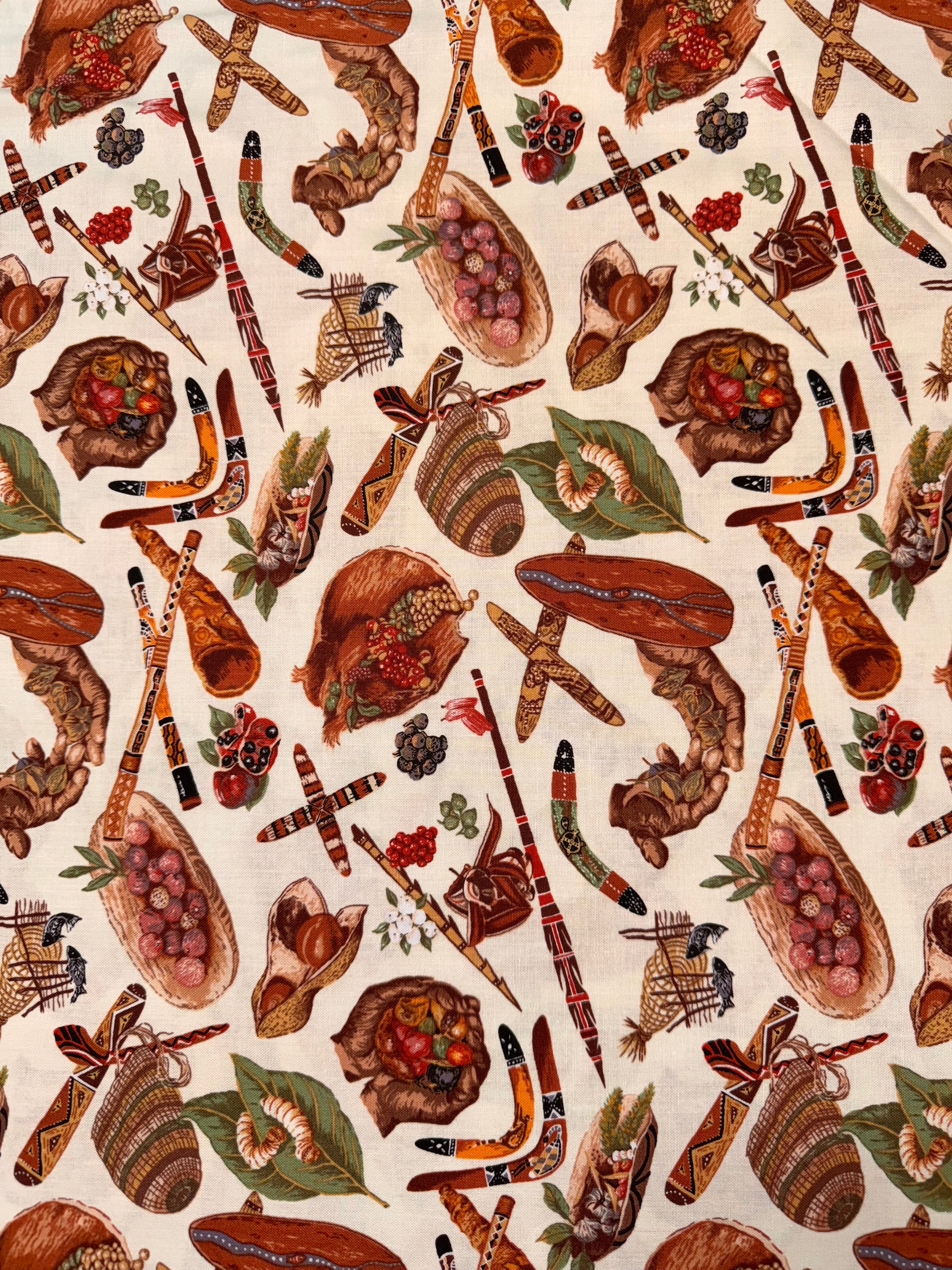 Great Australian fabric - Boomerangs, Grubs and Spears