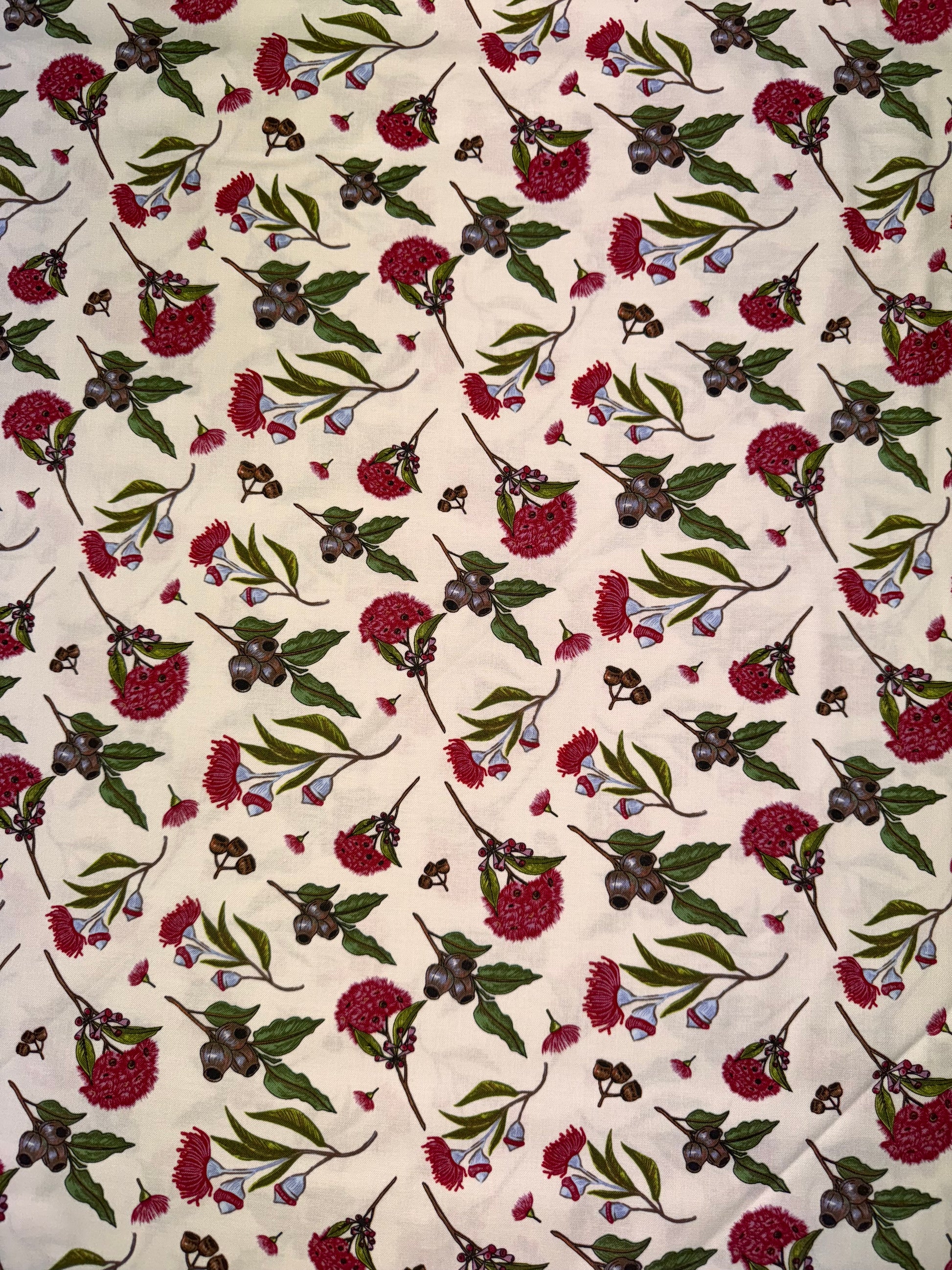Great Australian fabric - Gumnuts and Bottlebrush flowers