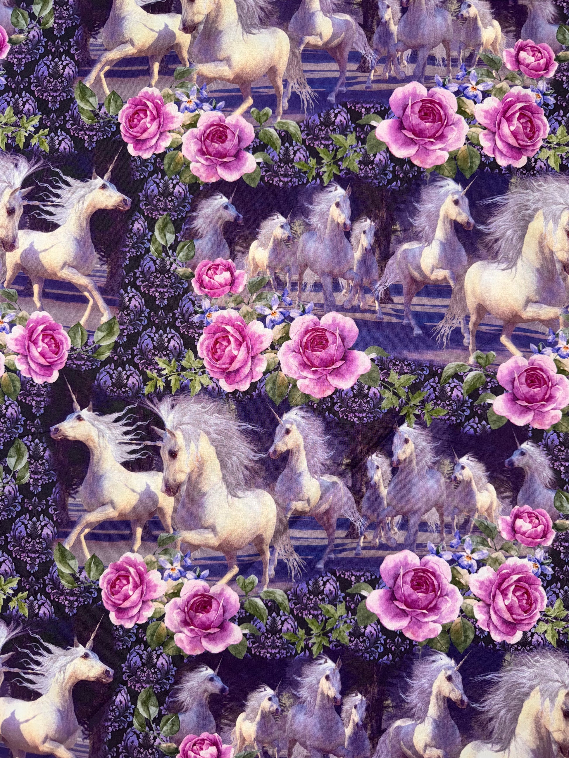 Exquisite Unicorn Allover Fabric to go with the large panel and the 6 smaller panels we stock. I stock matching panels and coordinating fabrics to make this into a gorgeous quilt.