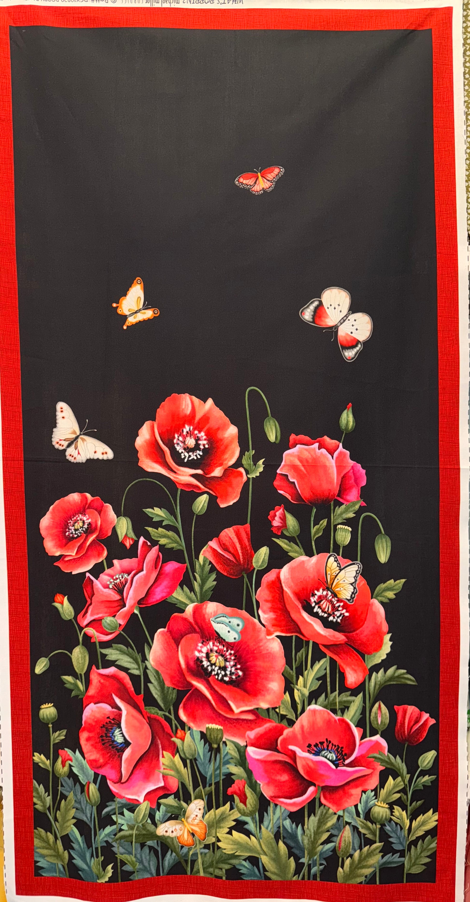 WOW - Large Poppies and Butterflies on a black background. Multiples would me a stunning One Block Wonder - 6 or 7 required - get in quick.